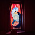 Die beiden Längsseiten des Gebäudes haben je 4 farbige Fenster, die die 8 Himmelkörper darstellen. Welcher Planet zu welchem Fenster gehört, entzieht sich noch meiner Kenntnis.