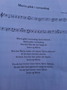 Heute war Julespill, mit bestimmt 25 Mitwirkenden. Es begann draußen, vor der Tunet, mit einer Einführung und gemeinsamen Singen, dann ging es zum nächsten Hügel, da standen 3 Engel, einmal umdrehen, da gingen Maria und Josef, machten kurz Pause und Josef berichtete, wie es ihm erging. Die beiden gingen weiter, wir Zuschauer auch, bis zu einem kleinen Feuerchen. Da tauchte ein Hirte auf, der auf seine Kameraden wartete. Die beiden kamen dann auch. Sie bekamen sich noch fast in die Wolle – es war herrlich lustig. Dann waren sie furchtbar müde und legten sich schlafen. Und erschienen 10 Engel, die wunderschön von der bevorstehenden Geburt sangen. Die drei Hirten wachten auf und erzählten sich von ihren Träumen. Sie beschlossen, dem Stern zu folgen. Wir gingen weiter und begegneten wieder Maria und Josef, die an die erste Tür klopften. Wir begleiteten sie zu nächsten Tür, wo sie lauthals abgewiesen wurden. Dann gingen wir in die Halle. Hier zogen erstmal alle ihre Schuhe und Jacken aus. Hier war die dritte Tür und es war leider nur noch Platz im Stall. Hier wurde das Kind geboren und die Engel erschienen wieder, auch mit Klarinette. Die Hirten fanden sich ebenfalls ein. Es war ein wundervolles Julespill. So eines habe ich noch nie erlebt.